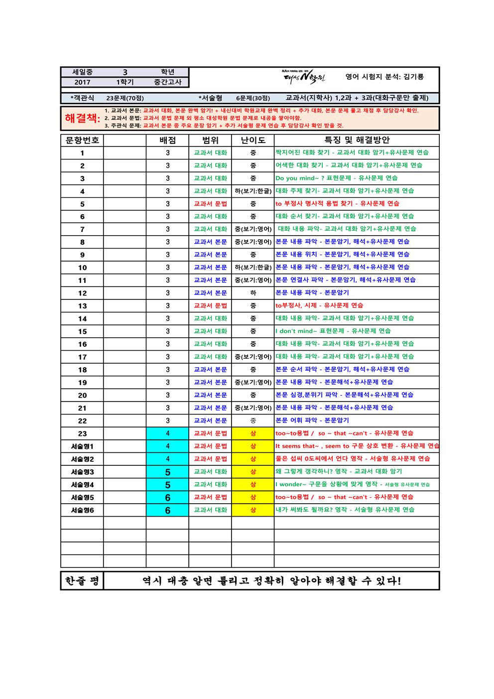 2   2017 1Çбâ Áß°£°í»ç ¼¼ÀÏÁß3 ½ÃÇèÁö ºÐ¼® ±è±â·æ 17.04.24 942