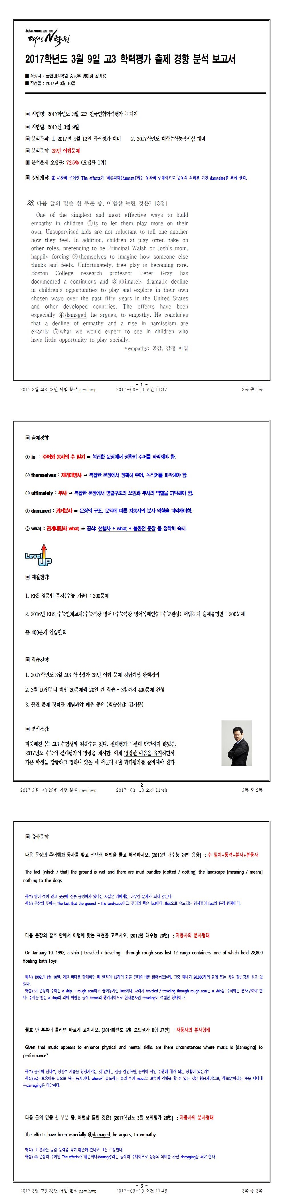 5   [Áßµî] 2017Çг⵵ 3¿ù °í3 ÇÐ·ÂÆò°¡ 28¹ø ºÐ¼® ±è±â·æ 17.03.10 2703